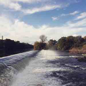 There’s a fish pass, I know. So I go to the other side of the weir to investigate. It takes me a while. I have to trudge a long way back downstream to the dual-carriageway laden with traffic and fumes, with particulates falling into the river. Then I cross the bridge, and walk back up the Taff Trail avoiding speeding cyclists. I cautiously make my way down the river bank to where I see children play in high summer.